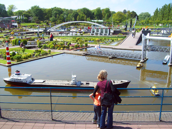No podían faltar los canales. Los más célebre también están presentes en Madurodam, aunque no es el caso de éste de la fotografía. Diferentes tipos de peces campan a sus anchas por las aguas, creando curiosos contrastes con los barquitos que transitan por ellos.