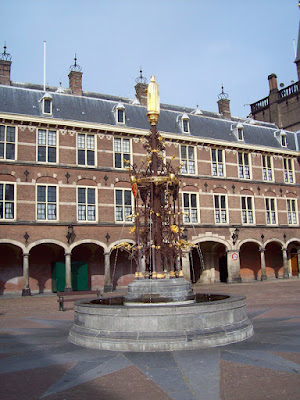 En la plazoleta central del Binnenhof, la espectacular Fuente del Conde Guillermo II de Holanda. Gran trabajo neogótico con numerosos elementos dorados de los holandeses Ludwig Jünger y Pierre Cuypers en 1883.